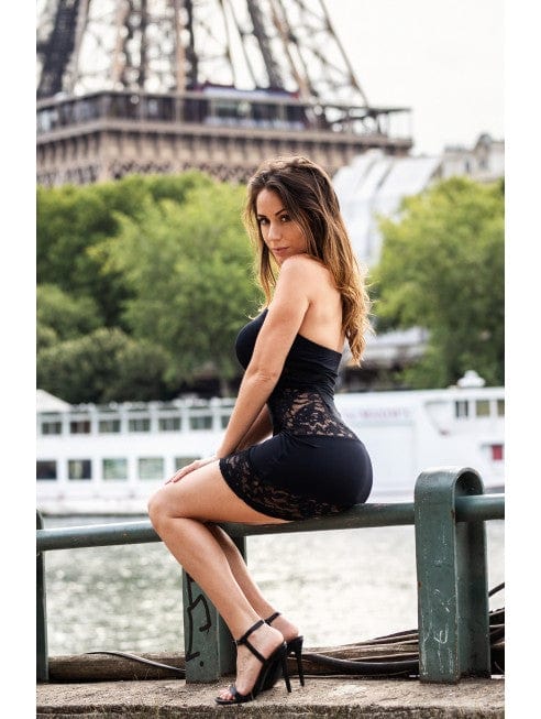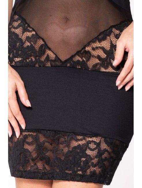 Siete invitati! Avete sempre sognato una notte sotto i riflettori e ora è il momento di fare il vostro ingresso. Vestitevi con questo abito in pizzo a rete con scollatura alta e schiena scollata.