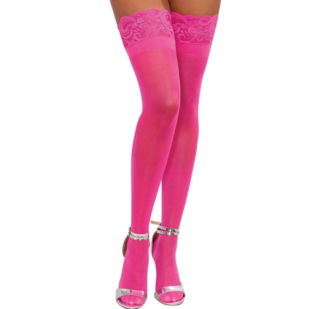 Queste calze autoreggenti rosa sono state progettate per garantire una finitura perfetta e il massimo comfort! L’85% di nylon e il 15% di elastan sono responsabili della sontuosa modellatura delle gambe e del leggero effetto opaco.