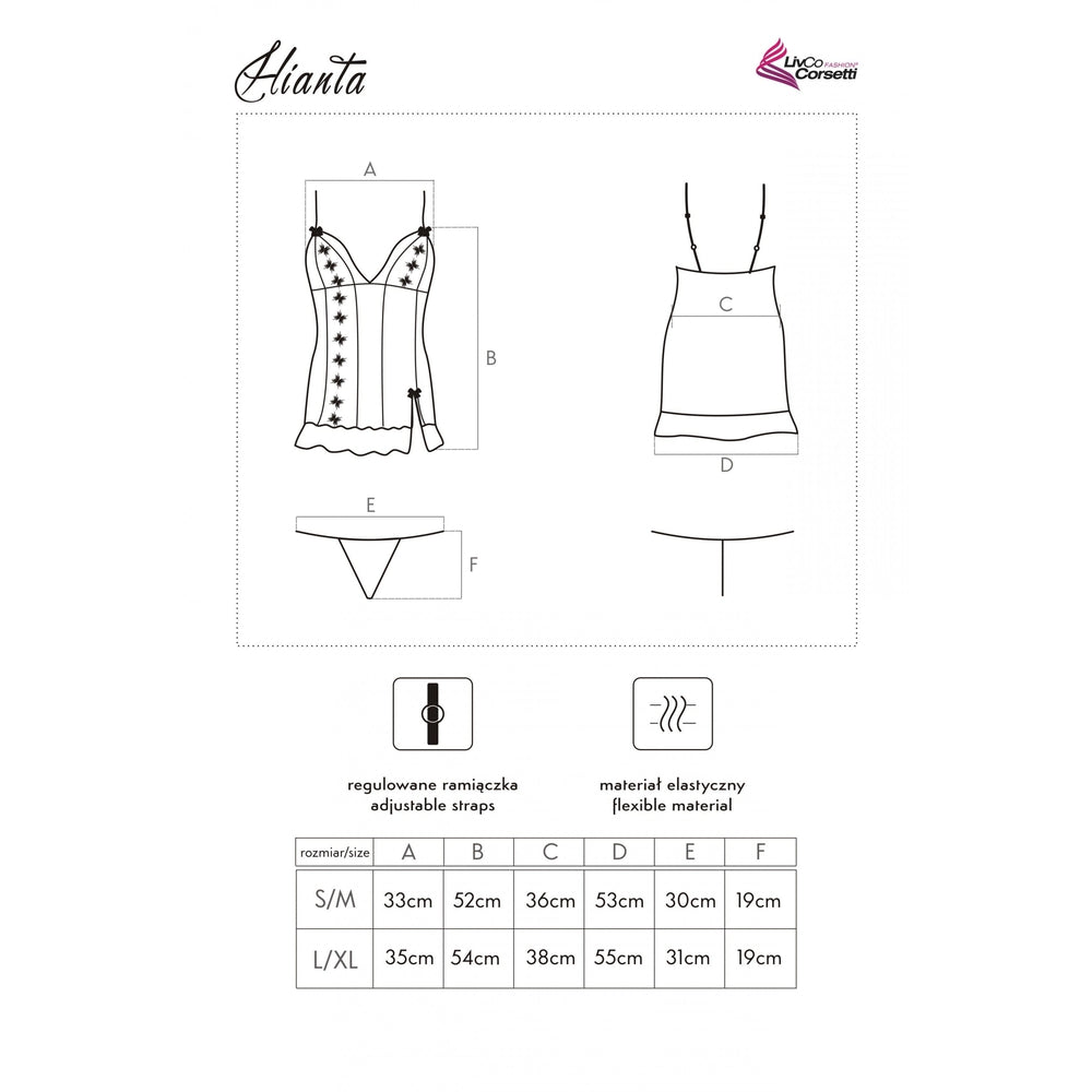 Babydoll corto in raso: un look sexy e femminileIl babydoll corto in raso Hianta di Livia Corsetti è un capo delicato ed elegante. È realizzato in raso nero ed è impreziosito da dettagli ricamati in viola sul davanti. La chemise è rifinita con volant per un effetto femminile ed elegante. Le spalline sono impreziosite da fiocchi in raso nero e il tessuto è leggermente trasparente in alcuni punti. Per completare il look, è incluso un perizoma coordinato. Il babydoll corto in raso Hianta di Livia Corsetti è un capo senza tempo che può essere indossato per occasioni speciali o per una serata romantica. È disponibile in diverse taglie ed è realizzato in tessuto morbido e confortevole. L’Hianta Satin Short Babydoll di Livia Corsetti è un capo unico che offre stile e comfort.