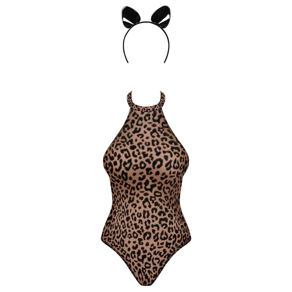 Ulteriori dettagli ludici: Set perfetto per giochi frivoli Tessuto elasticizzato ed elastico per adattarsi a tutte le forme Sexy stampa leopardata Include body e fascia per le orecchie in morbido tessuto