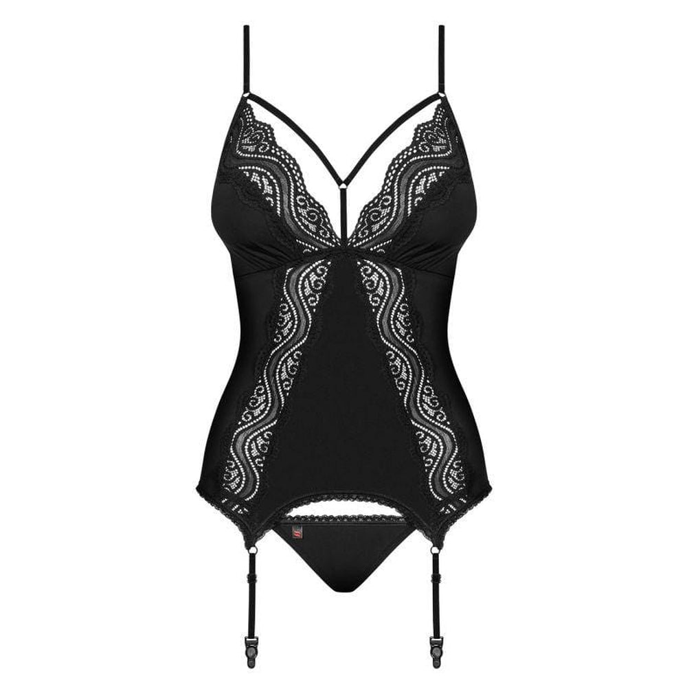 La Guêpière Glamour: il must-have per un look sexy ed eleganteHai voglia di provare qualcosa di nuovo? Il bustier Glamour è il capo perfetto per una serata indimenticabile. Con il suo taglio sottile, il pizzo sensuale e il nero elegante, questa guêpière è allo stesso tempo elegante e sexy. Ha spalline regolabili e un reggicalze per un comfort e una vestibilità perfetti. Il busto è ornato da pizzo e spalline per un seno delicatamente accentuato. Le rifiniture in pizzo sul davanti e sul retro aggiungono un ulteriore tocco di glamour. Il taglio aderente al corpo offre una vestibilità perfetta ed è incluso un sexy perizoma. Realizzato in delicato e flessibile tessuto Multistretch (90% poliammide, 10% elastan), questo bustier glamour è la scelta perfetta per una serata memorabile. Preparatevi a vivere un’esperienza indimenticabile con il bustier glamour!