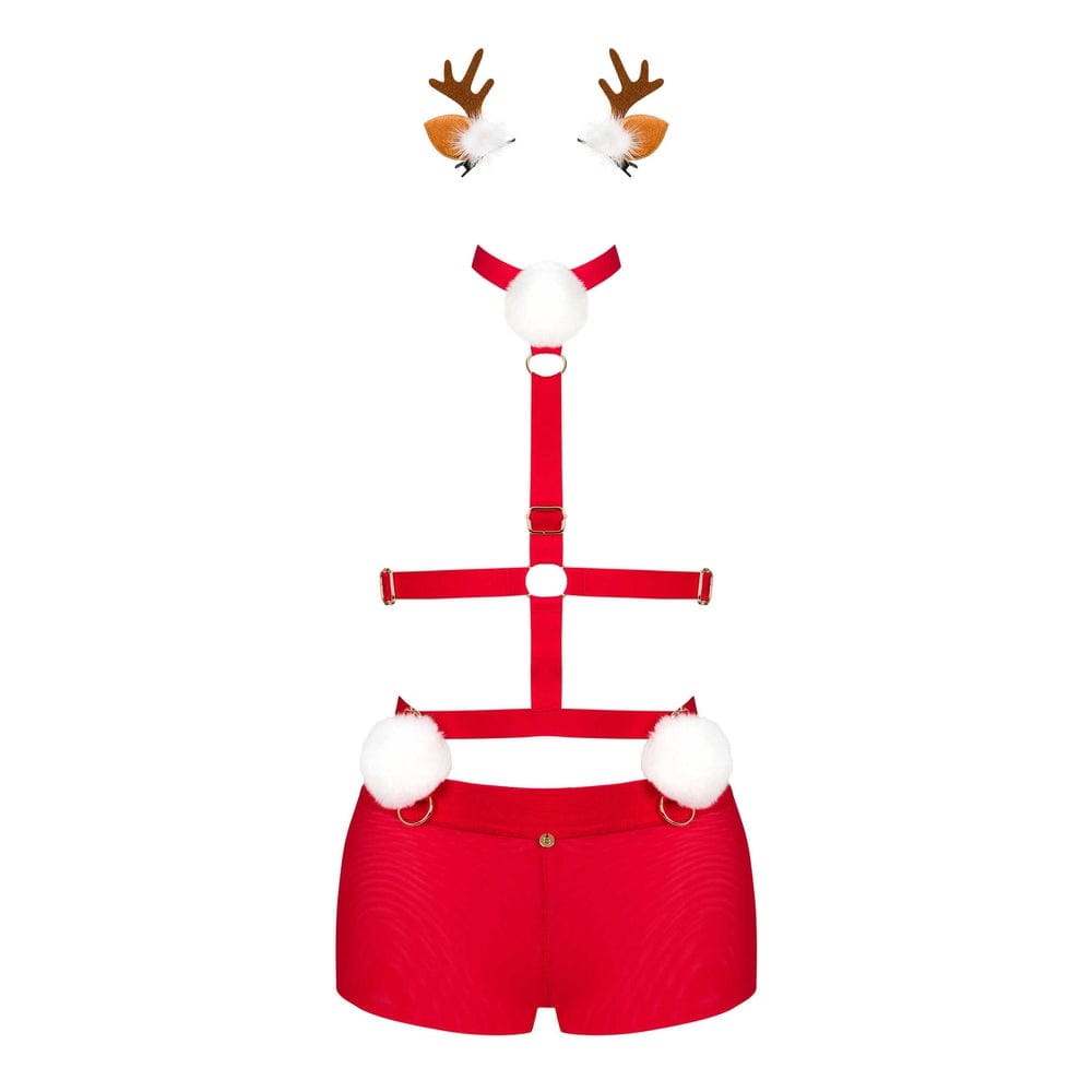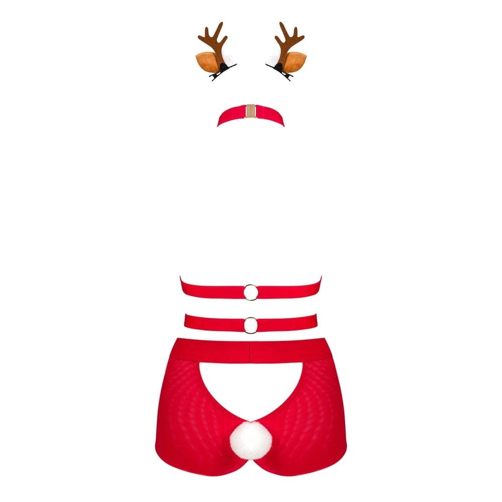 Set Ms Reindy La sensuale Madame Renne sa come alzare il riscaldamento in una serata invernale! Questo set sexy garantisce un momento fantastico con il vostro partner. Un taglio allettante ed elementi estremamente piccanti – una pettorina, mutandine e un frivolo cerchietto con orecchie, insieme creano un outfit giocoso in un’atmosfera di festa.Scoprite altri dettagli:- un sexy set da Signora Renna- pettorina rossa regolabile- intriga e mette in risalto magnificamente. Renna – un’aggiunta giocosa – dettagli brillanti – chic ed elegante – materiali morbidi al tatto (mutandine: 94% poliammide, 6% elastan, pettorina: 90% poliammide, 10% elastan, orecchie: 25% PET, 50% ferro, 25% poliestere)