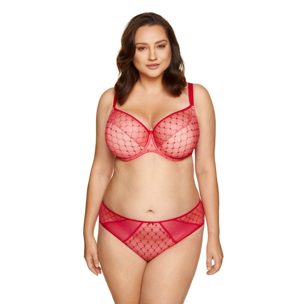 Sensuale reggiseno da donna semi-imbottito che offre un meraviglioso sostegno al seno. Realizzato in un tessuto plissettato non convenzionale, ricoperto di cuori ricamati.