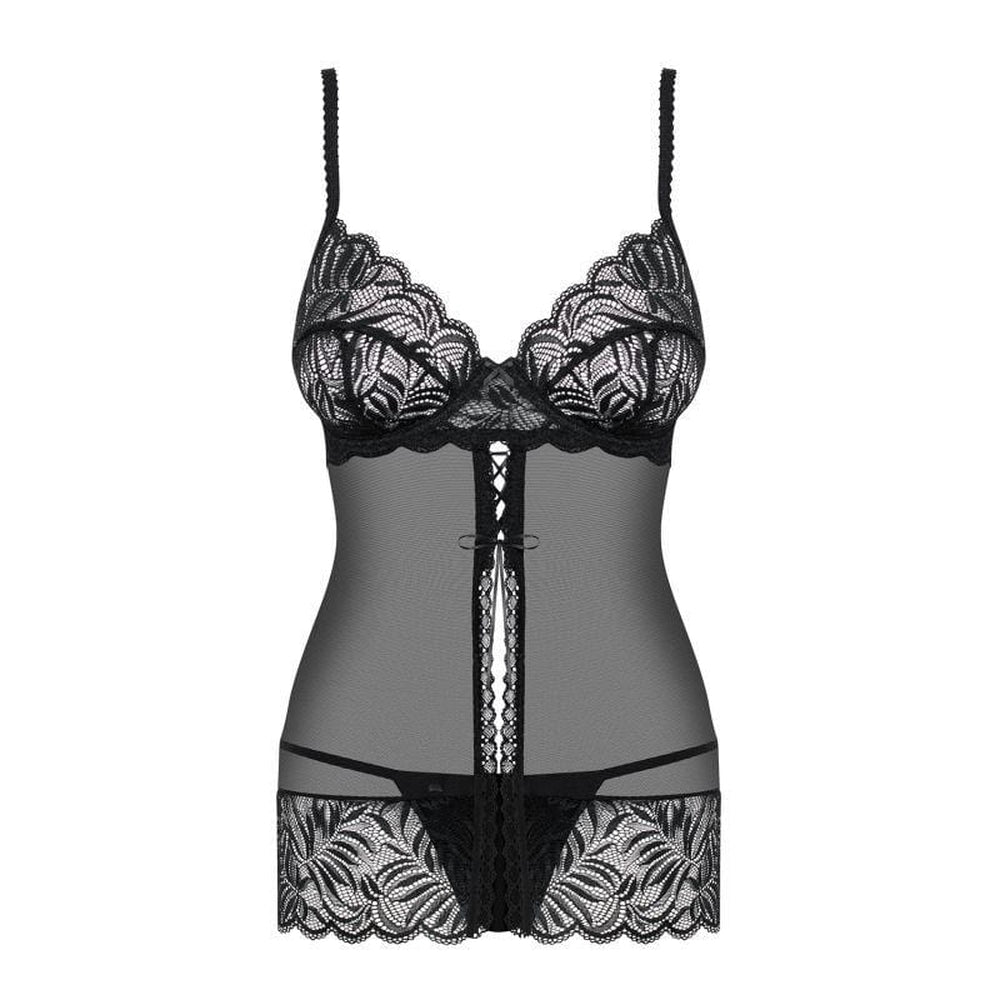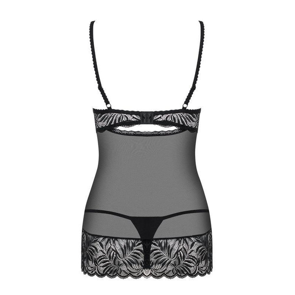 Questa sexy chemise è accompagnata da un perizoma coordinato ed è realizzata al 94% in poliammide e al 6% in elastan, per un tessuto morbido ed elastico.