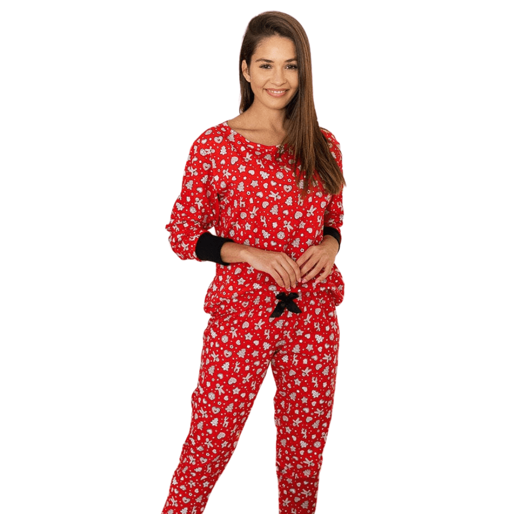 Perfetto per le feste, questo sexy pigiama a due pezzi rosso Noel è completamente ricoperto da un caratteristico motivo natalizio. Rendete speciale questo Natale!