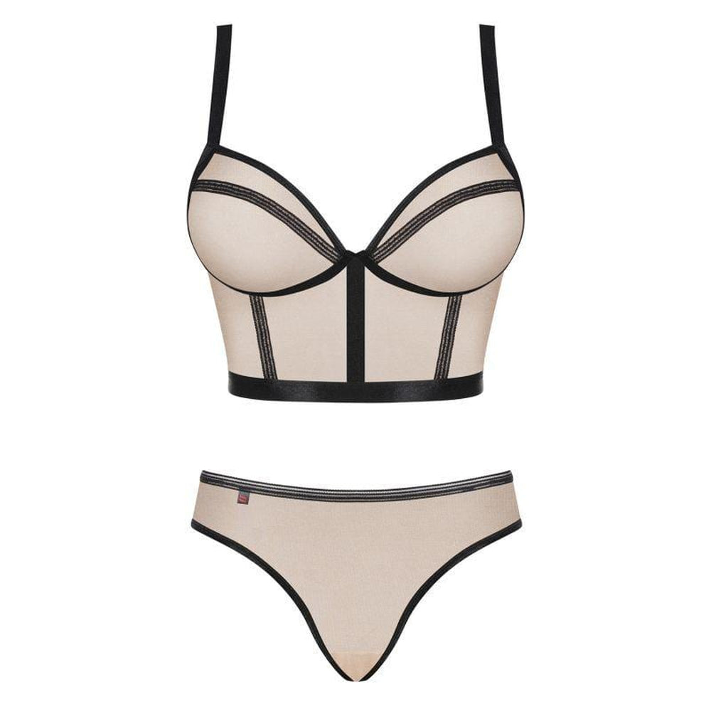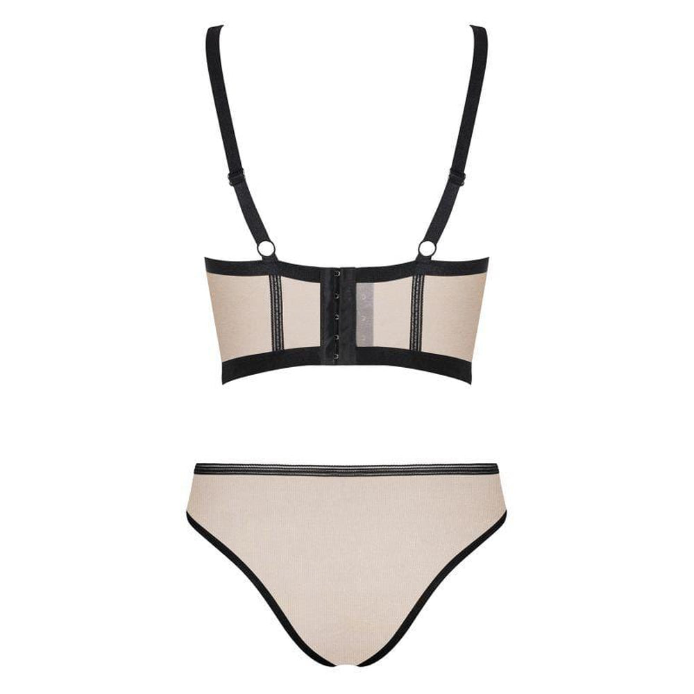 State aspettando un appuntamento in camera da letto? Vi sentirete benissimo con questo elegante ensemble nudo! Tenete a portata di mano un estintore 😉 Maggiori dettagli : Set sottile e seducente in tonalità carne Materiale trasparente con filo dorato Spalline regolabili Chiusura regolabile – fantastica vestibilità e comfort Il set comprende top e mutandine abbinate Composizione: 90% poliammide, 10% elastan