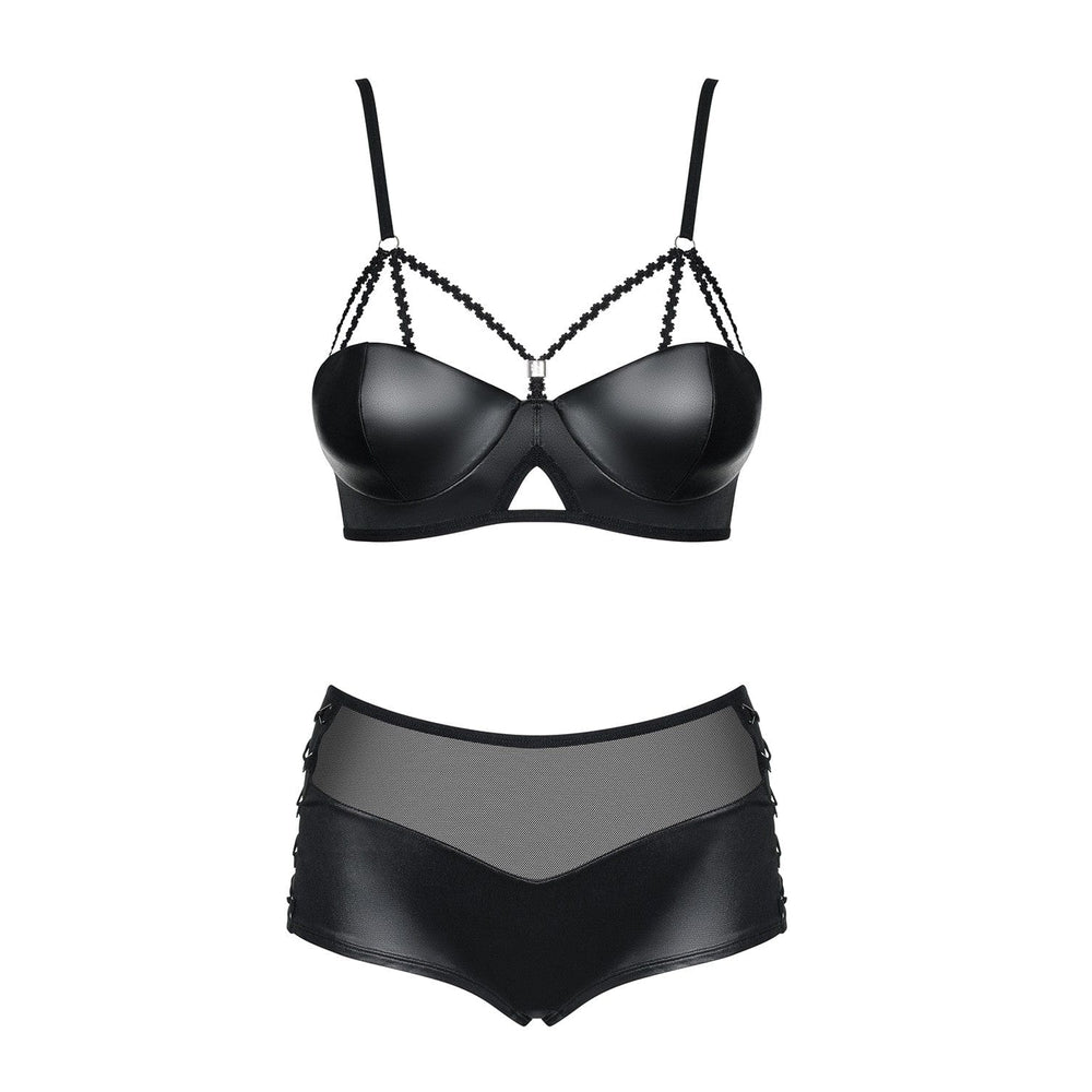 Lasciatevi tentare dal nostro set di shorty Leatheria, che vi farà sentire sexy e sicure di voi stesse. Questo splendido set di lingerie in tessuto wet look e rete trasparente è perfetto per una serata speciale o per una notte bollente.