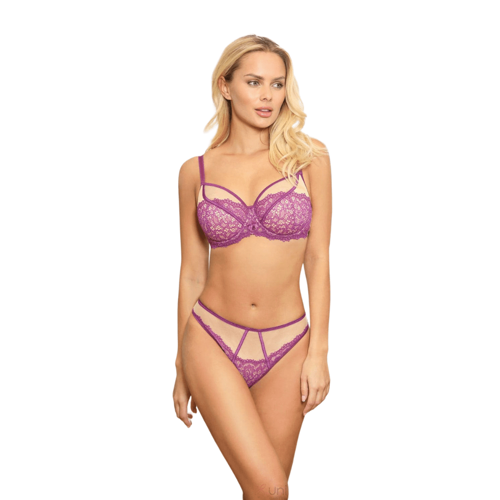 La parte inferiore delle coppe è imbottita con schiuma beige e decorata con pizzo. Le spalline sono non rimovibili e regolabili.