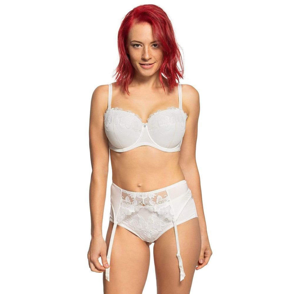 Elegante reggiseno a balconcino in tulle color vaniglia. Un design che permette di esporre la parte superiore della scollatura, solleva il seno e lo ingrandisce otticamente.